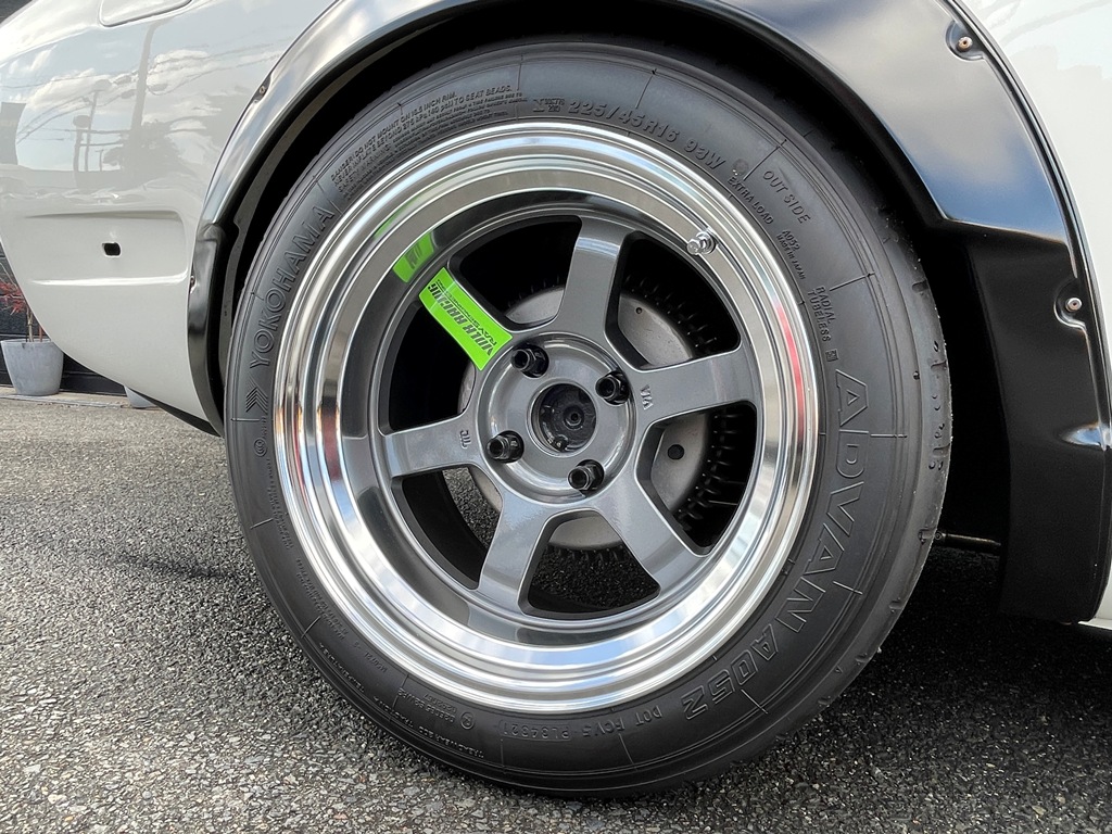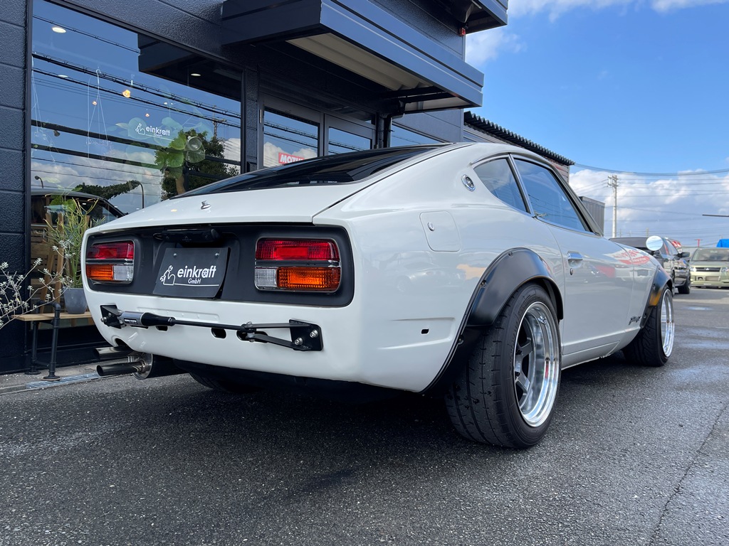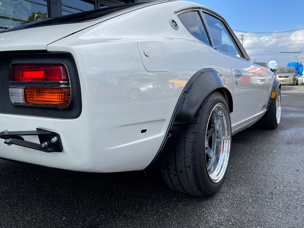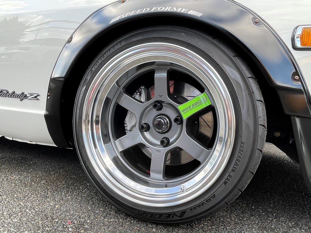 ZEAL特注全長式車高調・RAYS TE37V SL16インチ車高調・SPEED FORMEオーバーフェンダー・SARDパフォーマンスダンパー。レストモッド仕様のイカしたS30です!