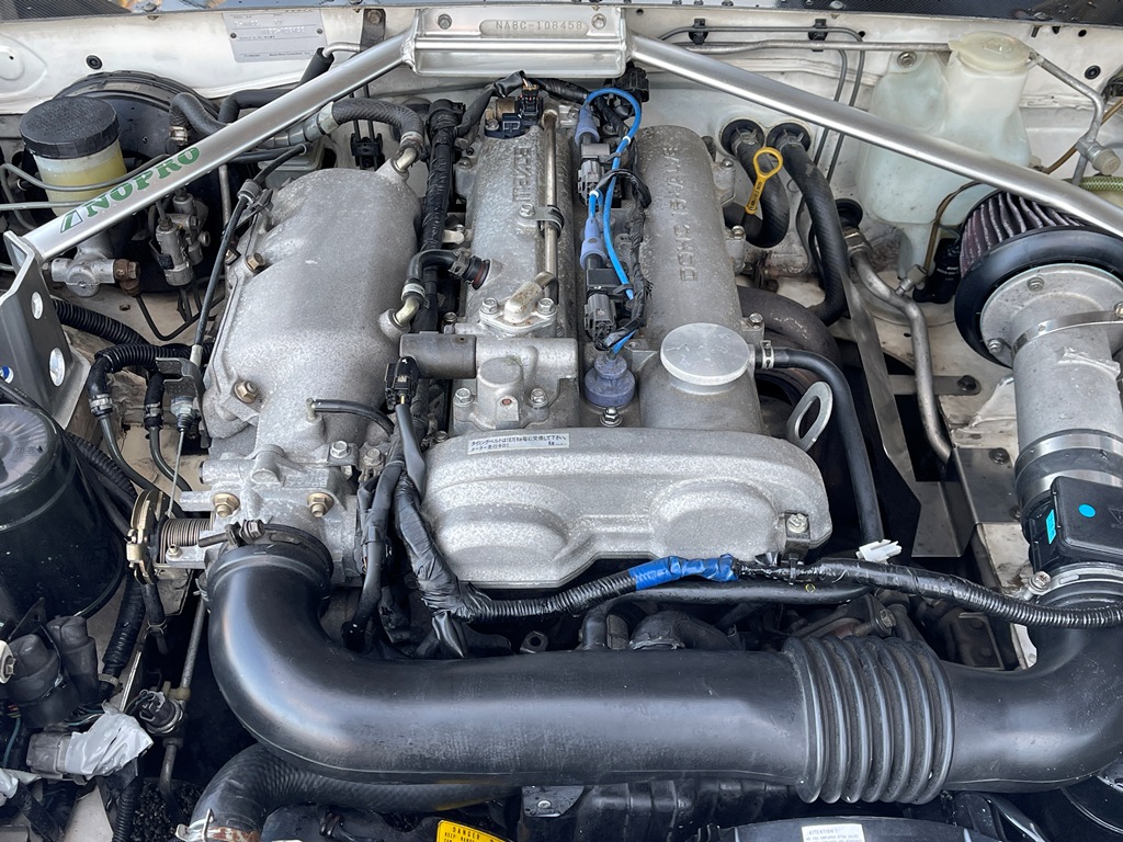 最大の魅力は後期NBロードスター用BP-VEエンジンで非常にトルクフルで車重の軽いロードスターには十分なパワーです。この個体もコンディション良く高回転までストレスなく一気に吹き上がります。