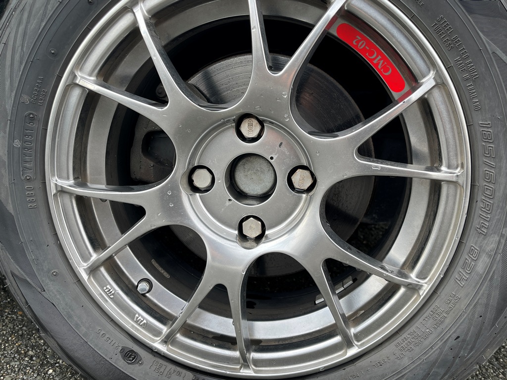 純正アルミ メーカーで販売しているアルミホイールが装着されています。