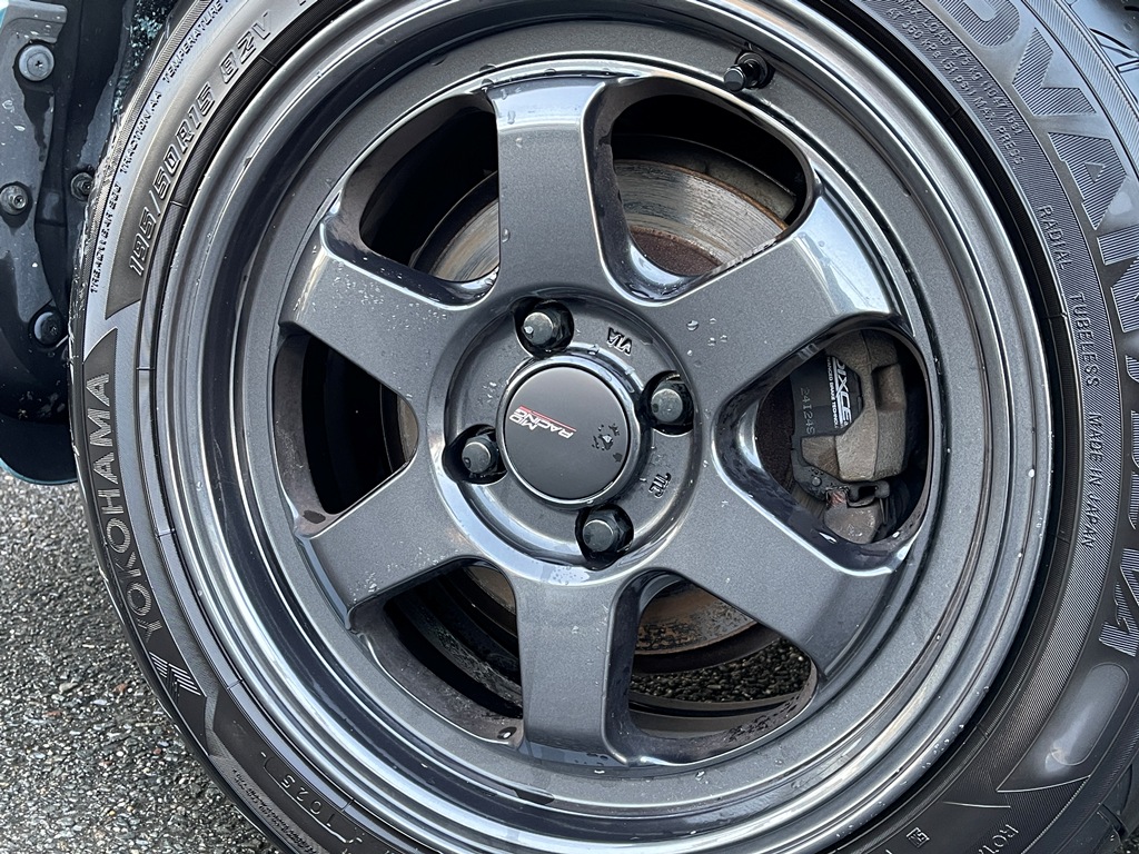 純正アルミ メーカーで販売しているアルミホイールが装着されています。
