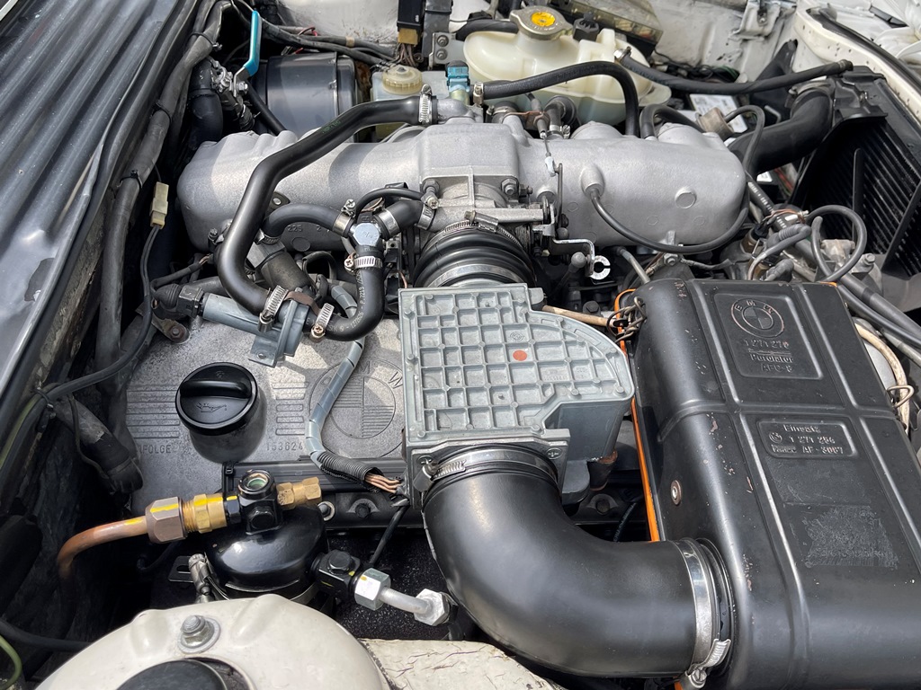 イカ足のような通称「イカマニホールド」と呼ばれるE9 3.0CSIから受け継いだ独特なインマニが特徴的な名機M90エンジン。令和7年エアコン修理済み。