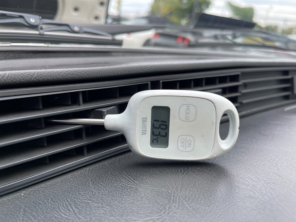 令和7年エアコンリフレッシュ済み。旧車ですが外気温38度でここまで冷えます。