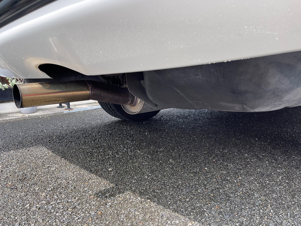 ステンレスワンオフマフラー。音量はとてもジェントルです。