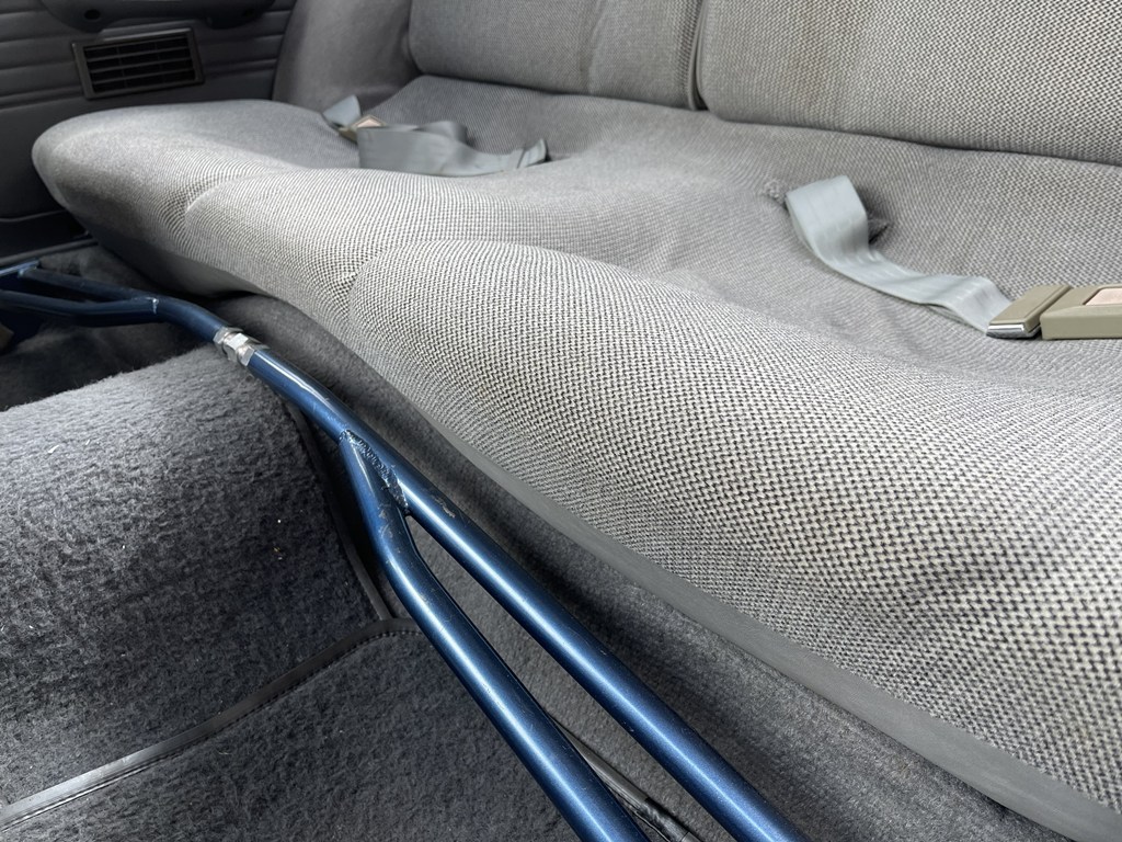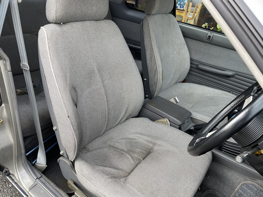 ベンチシート 前席シートが完全には独立しておらず、長椅子状につながって見える構造になっています。
