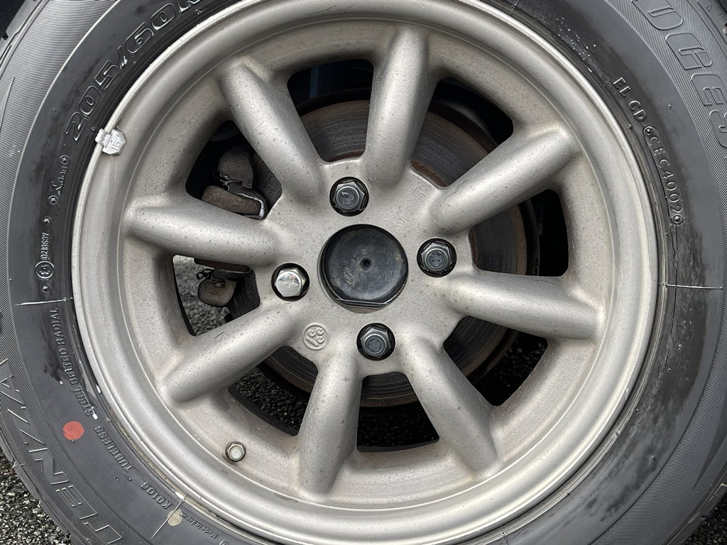 純正アルミ メーカーで販売しているアルミホイールが装着されています。